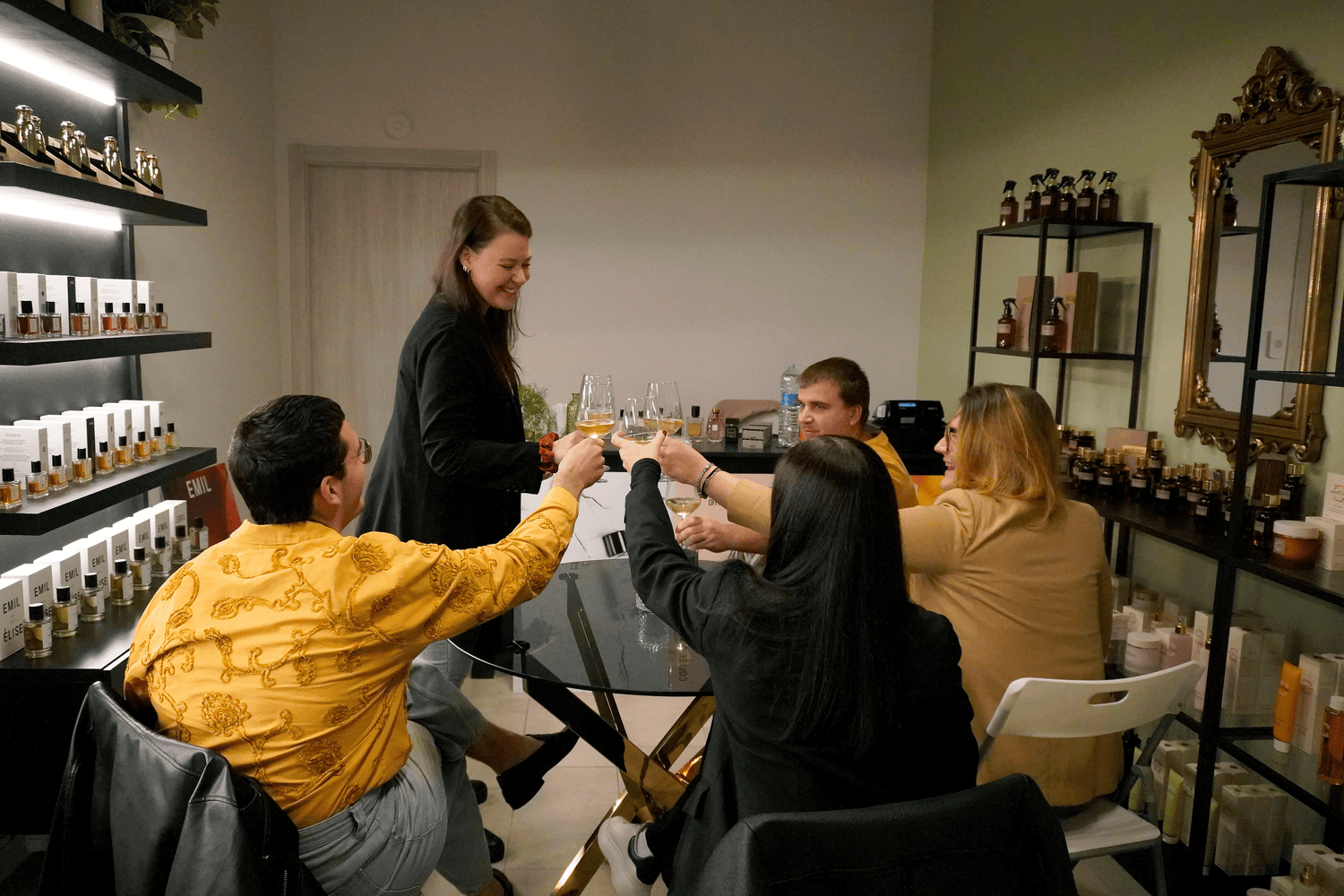 Credendo fermamente nel potere benefico della condivisione, ogni settimana si tiene un incontro tematico di gruppo in cui Jasmine guida i partecipanti in un percorso alla scoperta dei profumi: illustra inizialmente le materie prime e le componenti per la formulazione di una fragranza, dopodiché aiuta a riconoscere e distinguere le note differenti in una stessa famiglia olfattiva di profumi. Non si tratta di una lezione, ma di un vero e proprio momento in intimità di discussione e compartecipazione.
