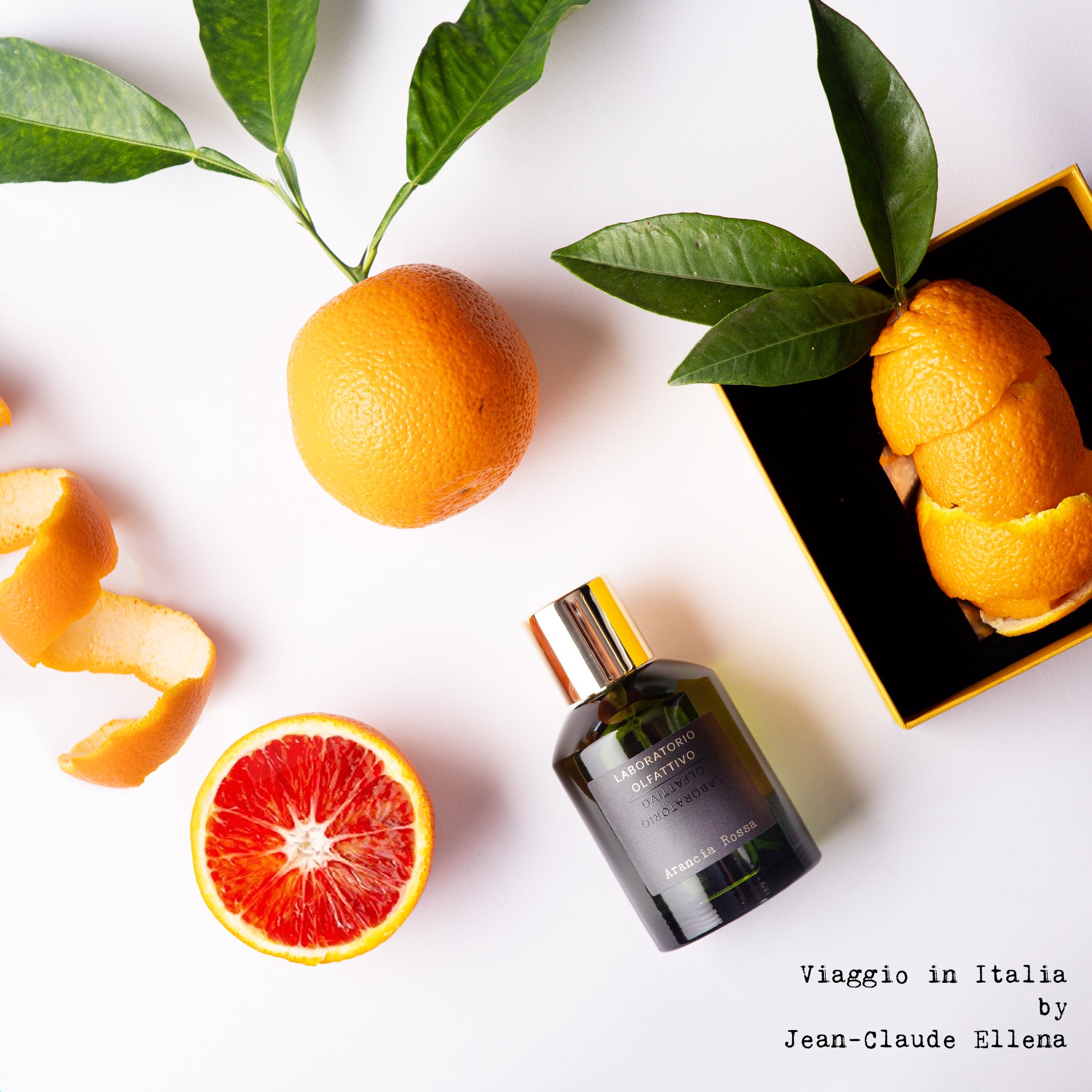 Il maestro profumiere Jean-Claude Ellena, ispirato dall’amore per l’Italia, firma per Laboratorio Olfattivo una collezione chiamata “Viaggio in Italia by Jean-Claude Ellena”, le cui cinque tappe sono: Mandarino, Limone, Bergamotto, Arancia Rossa e Pompelmo rappresentazioni della gioia di vivere e del buonumore tipicamente italiani. Profumi che sono come “un raggio di sole in una giornata tipicamente invernale”.